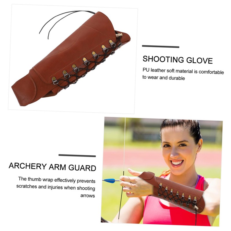 Arm Guard for This is an hand protector.Wrist Protector for It ismade of PU leather material, durable to use. Hand Glove With wrap around yourthumb area, it can protect wear from string on your finger while pullingand releasing