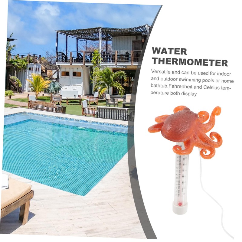 Made of plastic material, this swimming pool floating thermometer displays both Fahrenheit and Celsius degree, with a string attached, you can measure the temperature of the swimming pool without entering the swimming pool. Versatile and can be used for indoor and outdoor swimming pools.