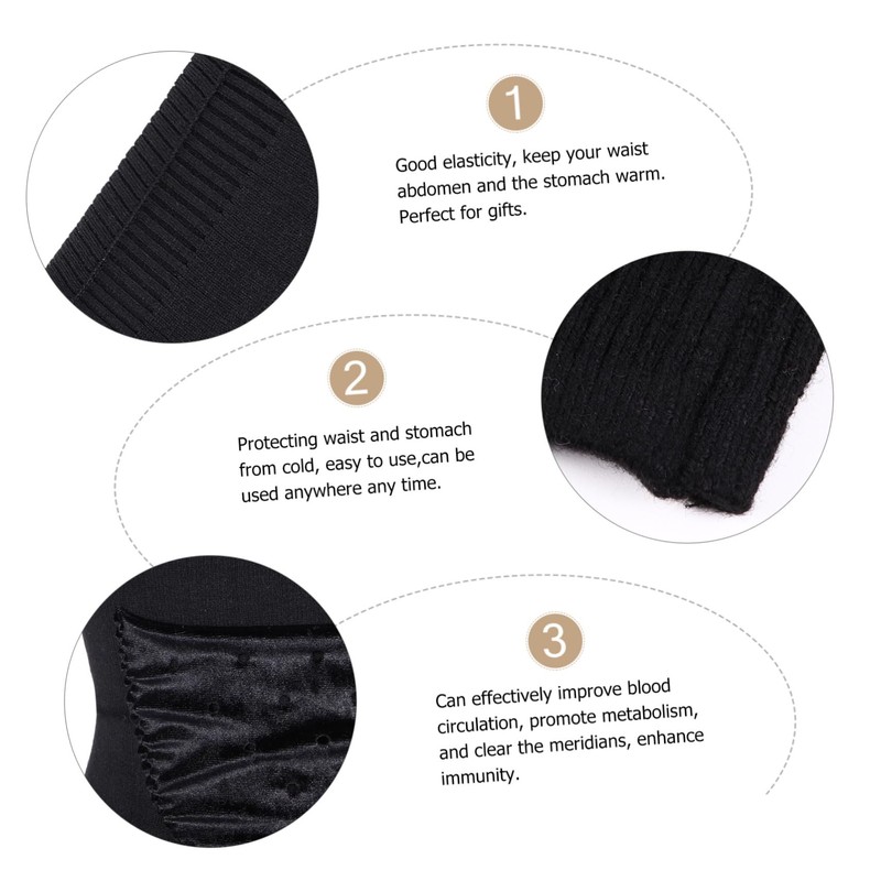KOMBIUDA Wool Waist Support Belt Unisex Abdominal Protector for Warmth Comfortable Stomach Brace for Winter Activities Promotes Black