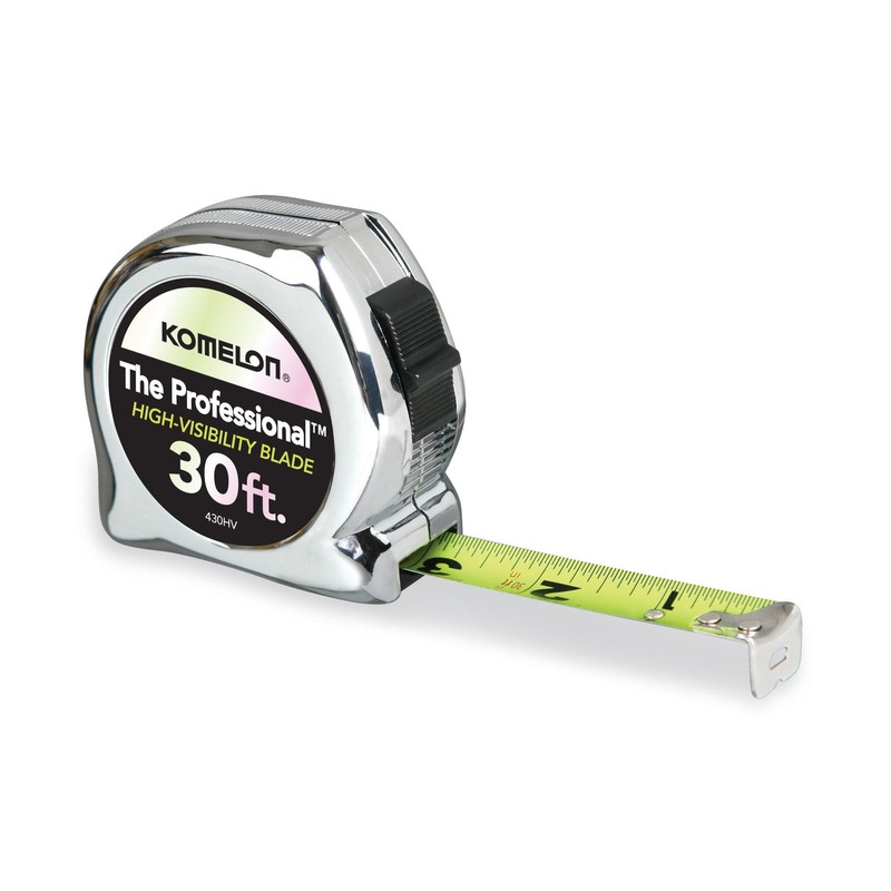 Komelon 430HV High-Visibility Professional Tape Measure, 30-Feet by 1-Inch, Chrome