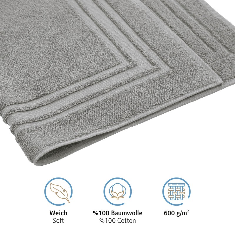 - High-quality bath mat made from 100% cotton with two woven borders. Made from 100% soft, tear-resistant cotton with a fabric weight of 600 g/m²