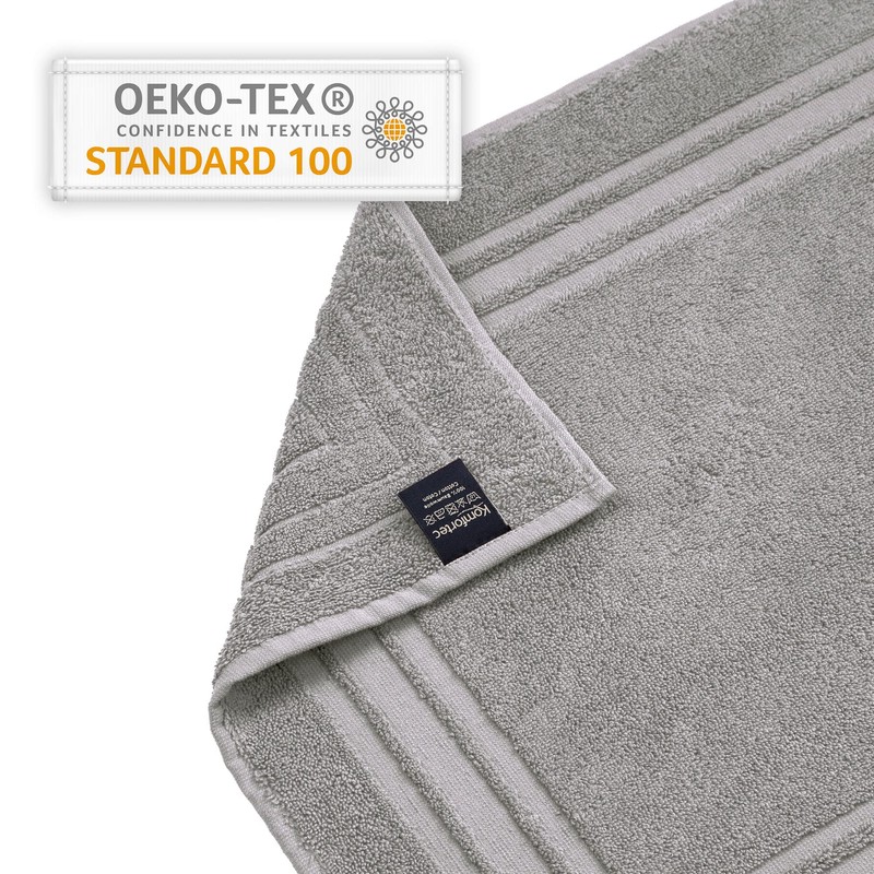 Komforttec 2-Piece Bath Mat Set, Terry Cloth Shower Mat, Washable Shower Mat & Bath Mat, 600 g/m² & 100% Cotton, Absorbent & Quick-Drying, 50 x 70 cm, Silver Grey