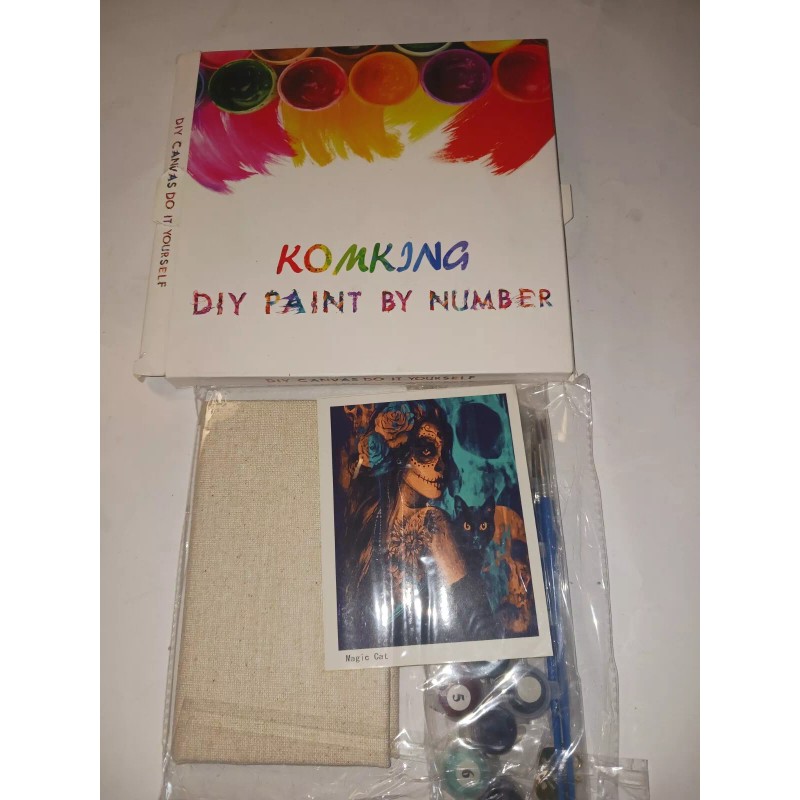 Komking Paint by Numbers DIY Acrylic Painting Kit for Adults, Sugar Skull, Magic Cat NIB