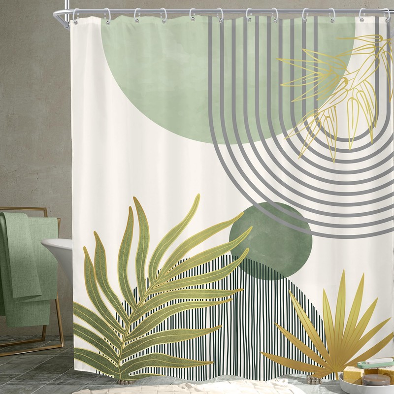 KOMLLEX KOMLLEX Mid Century Mint Green Boho Shower Curtain 72Wx84L Inches Abstract Modern Shower Curtains for Bathroom Decor Plant Botanical Minimalist Arch Sun Fabric Liner Waterproof Polyester 12 Pack Hooks