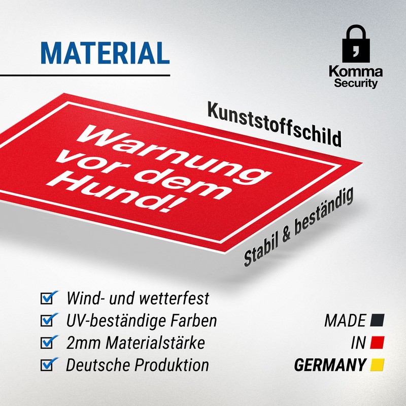 Komma Security Warning of the Dog Sign - 30 x 20 cm Sign Weatherproof Dog Sign Garden Gate Driveway Gate The Front Door Sign Deterrent Warning Sign Burglary Protection