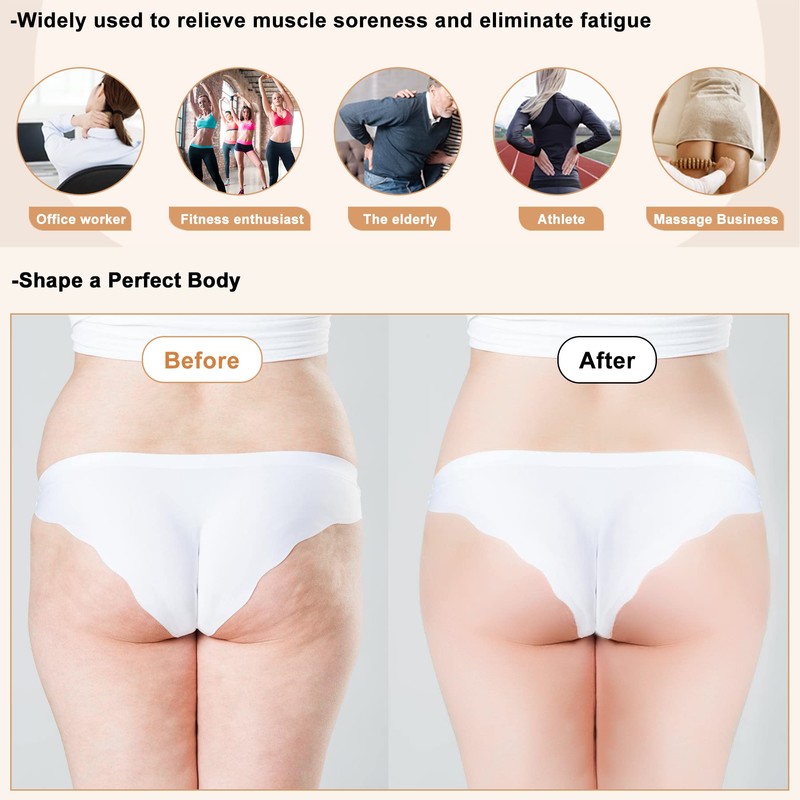 - [Non-invasive Treatment]: Wood therapy helps to reduce the “Muffin Top” around the upper hips or “Saddlebags” on the thighs, chisels the waist, define arms and legs, firms thighs and buttocks, reduce back and belly fat, stimulate lymphatic drainage. Our wooden massagers give you all the benefits of conventional, surgical solutions for body sculpting, contouring,anti-cellulite,without the surgery aspect of things.