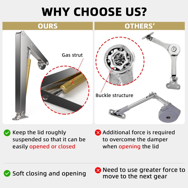 - 【HOLDS LID OPEN】Gas struts heavy duty soft close lid stays will hold your lid open until you push it down. Never worry again about having to prop the lid open