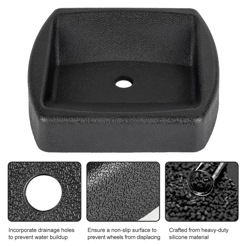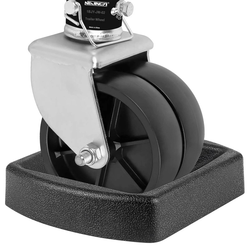 【Extend the Service Life of Jack Wheels】Place the Chock underneath your Jack Wheel to prevent damage from mud, sand, oil, and dirt. The drainage hole effectively prevents rainwater build-up and rust damage. With the jack wheel chock, your Jack Wheel will stay clean and its service life will be prolonged.
