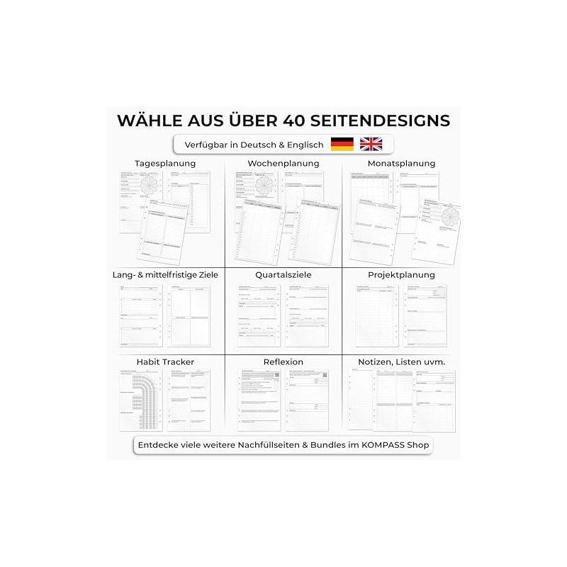 Seamless integration: Complete your ring binder planner with these versatile inserts and use them for any occasion. Order now and expand your planner with structure and precision!