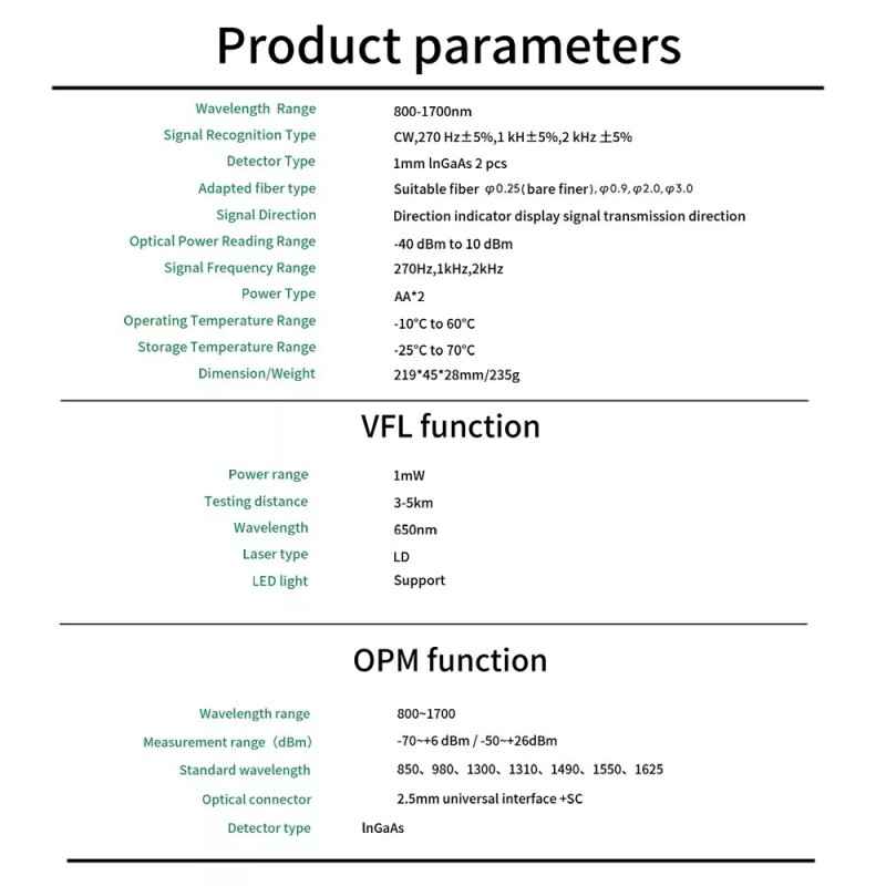 - Optical Power Testing Range: -70~+6dB