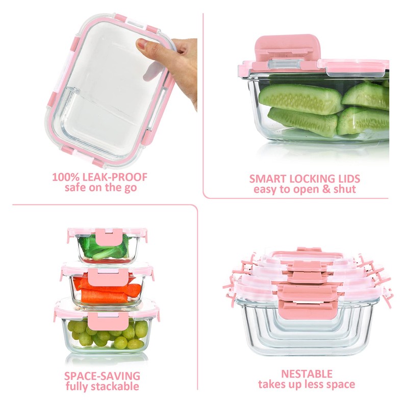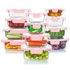 KOMUEE 24 Pieces Glass Food Storage Containers Set,Glass Meal Prep Containers Set with Lids-Stackable Airtight Glass Storage Containers with lids,Freezer to Oven Safe,Pink