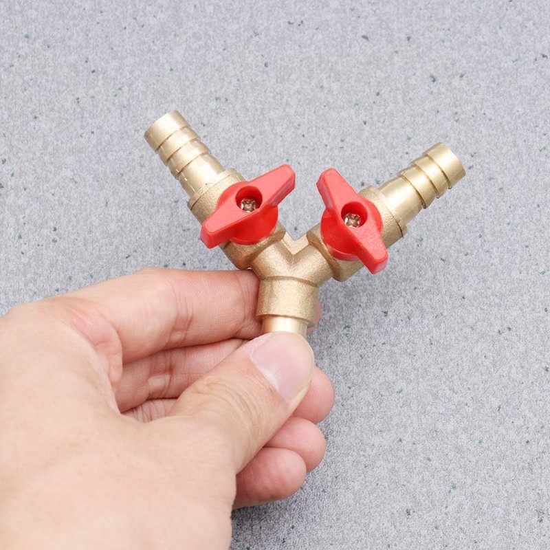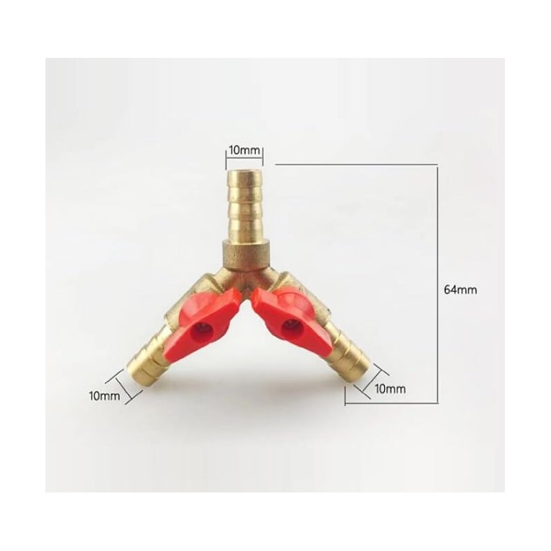KOMUNJ 1 Piece Y 3 Way Hose Connector, Brass Ball Valve Splitter, Brass and Zinc Alloy for Carpenter's Fittings Air Water Gas 10mm