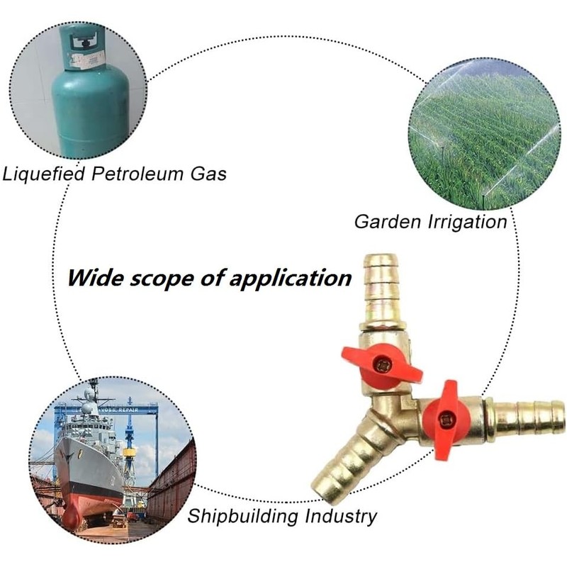 KOMUNJ 1 Piece Y 3 Way Hose Connector, Brass Ball Valve Splitter, Brass and Zinc Alloy for Carpenter's Fittings Air Water Gas 10mm