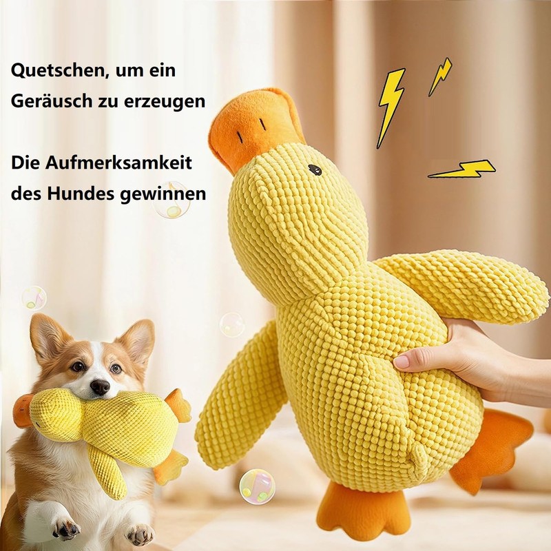 - The soothing duck for dogs consists of chewing material that can withstand even the most passionate chewers. Say goodbye to toys that fall apart after a few games.