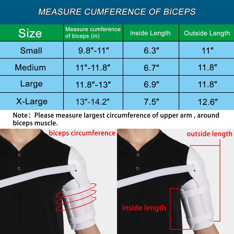 - Measure Your Size: Universal for left and right.Size S fits bicep circumferences of 9.8 to 11 inches;Size M fits bicep circumferences of 11 to 11.8 inches;Size L fits bicep circumferences of 11.8 to 13 inches;Size XL fits bicep circumferences of 13 to 14.2 inches.