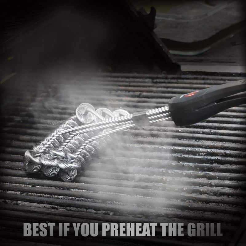 - For best results, follow these instructions: 1) Preheat grill. 2) Fill a small container with water to dip the brush frequently while brushing. This creates a steam cleaning effect when the wet brush touches the hot grill for deep cleaning. 3) Work in square sections defined by horizontal grates. Do not glide over horizontal grates as with a wire brush. 4) Angle the brush slightly backward for a deeper clean, depending on the diameter of your grill grates.