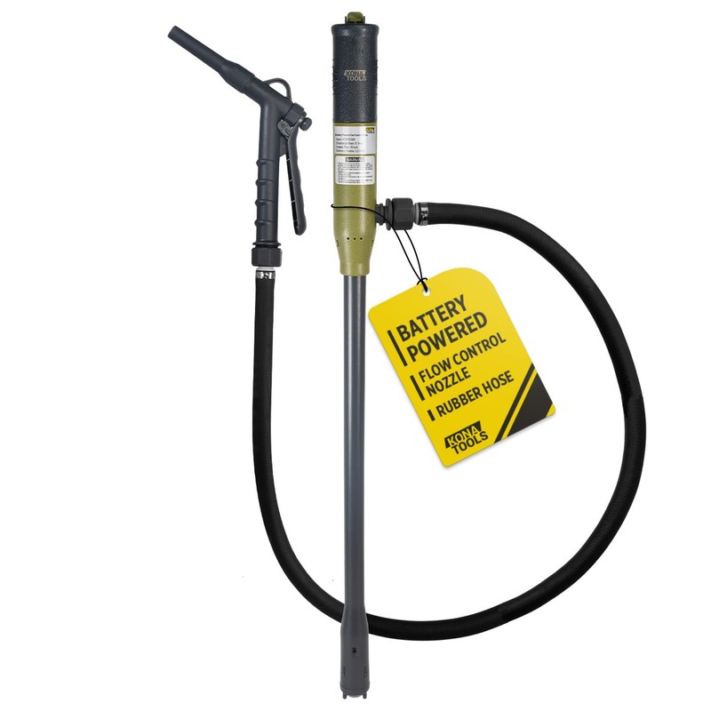 - HIGH FLUID TRANSFER SPEEDS - Pump fuel up to 3.2 gallons per minute, making it easy to transfer large volumes quickly--ideal for refueling vehicles, equipment, or emergency use. The pump is powered by 4 AA batteries (not included), allowing you to transfer fuel with ease. The stick pump design allows it to fit into gas containers with a depth of up to 19 inches, while the flexible rubber discharge hose offers extended reach so you can transfer fluids from a distance of up to 51 inches.