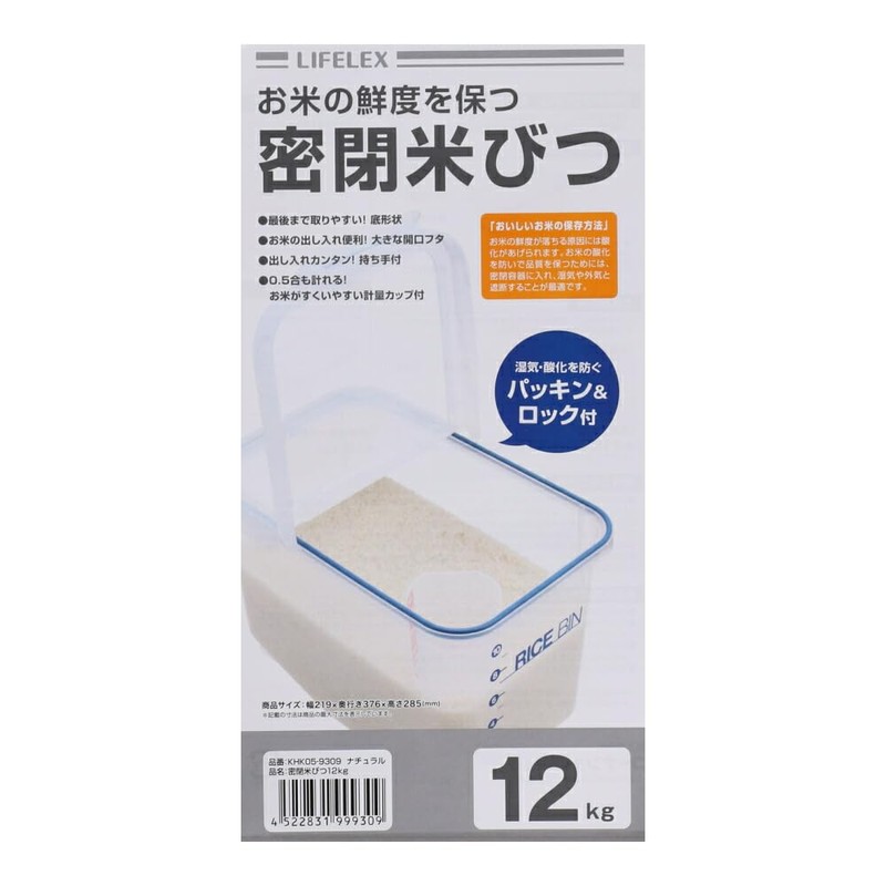 Konan Original LIFELEX Sealed Rice Bottle, 26.5 lbs (12 kg), KHK05-9309, Approx. Width 8.6 x Depth 14.8 x Height 11.2 inches (219 x 376 x 285 mm), Manufacturer: ASVEL Co., Ltd