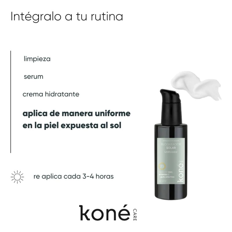 Protege tu piel mientras la cuidas con el Bloqueador Solar Koné Care FPS 35, formulado con Vitamina C, ideal para quienes buscan una piel unificada, protegida y radiante todos los días.
