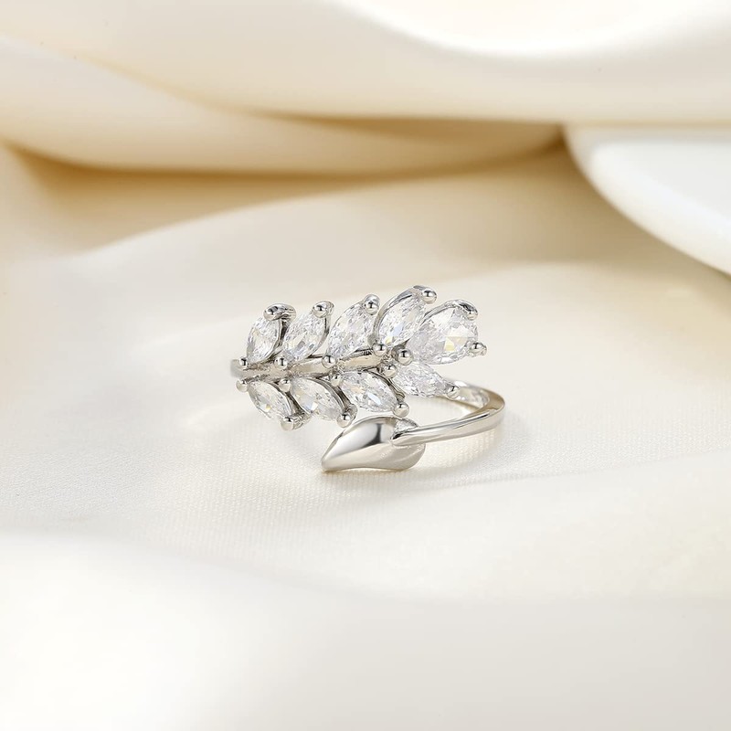 - Leaf thumb rings for women: olive leaf silver rings has an elegant appearance, natural, creative with cubic zirconia enough sparkle, pretty and dainty. Highly polished surface, solid and sparkling.