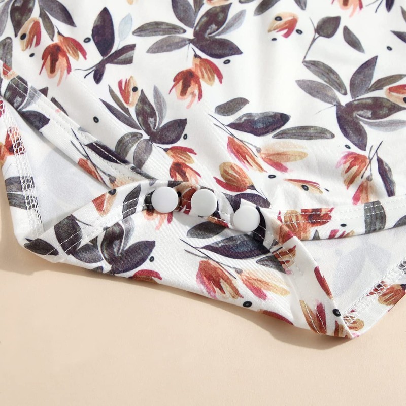 - Adorable Design: Short sleeves and round neck bodysuit with delicate floral pattern which is very suitable to wear in summer. The ruffle sleeve design is cute and also offers enough space for babies movement. The 3 snap buttons on the crotch make it easy for diapers changing. The elastic green skirt and the matching headwarp matches the floral color of the romper, which makes the whole outfits more stylish and fashion. Put them on you baby and ready to enjoy tonnes of compliments.