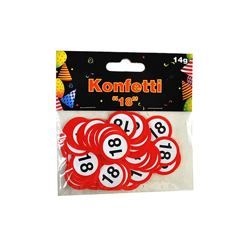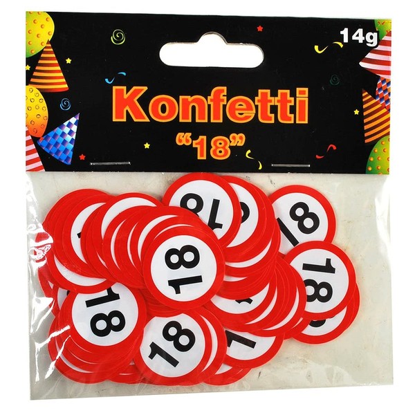 Konfetti 18 Geburtstag in Straßenschild-Optik, aus Papier rot-weiß, etwa 100 Stück, Tischkonfetti