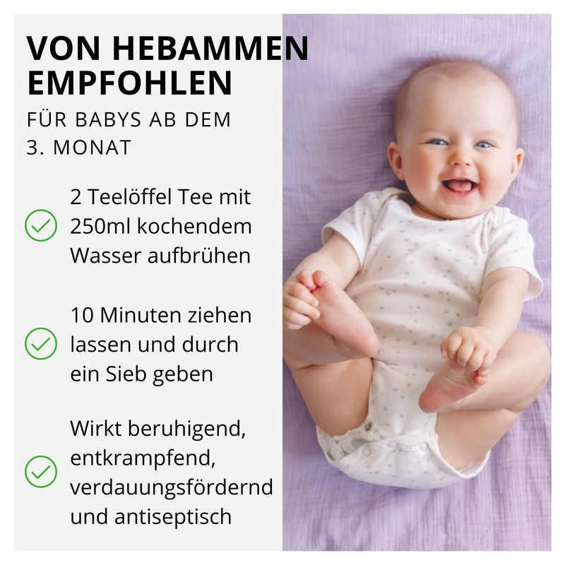 - Promotes digestion and decompression – the loose baby tea soothes your baby's stomach from 3 months thanks to selected organic herbs and also promotes the absorption of other liquids in addition to breast milk.