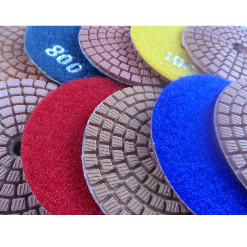 This pack carries 7 Pieces of 3 Inch / 80mm Resin Diamond Premium Wet Polishing Pad for concrete granite travertine stone.
