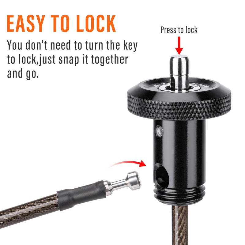 - ✔ EASY AND AUTOMATIC CLOSING : The bike lock has a push-to-lock function - simply push the lock head into the opening and it locks automatically. Ideal for quick stops and everyday use.