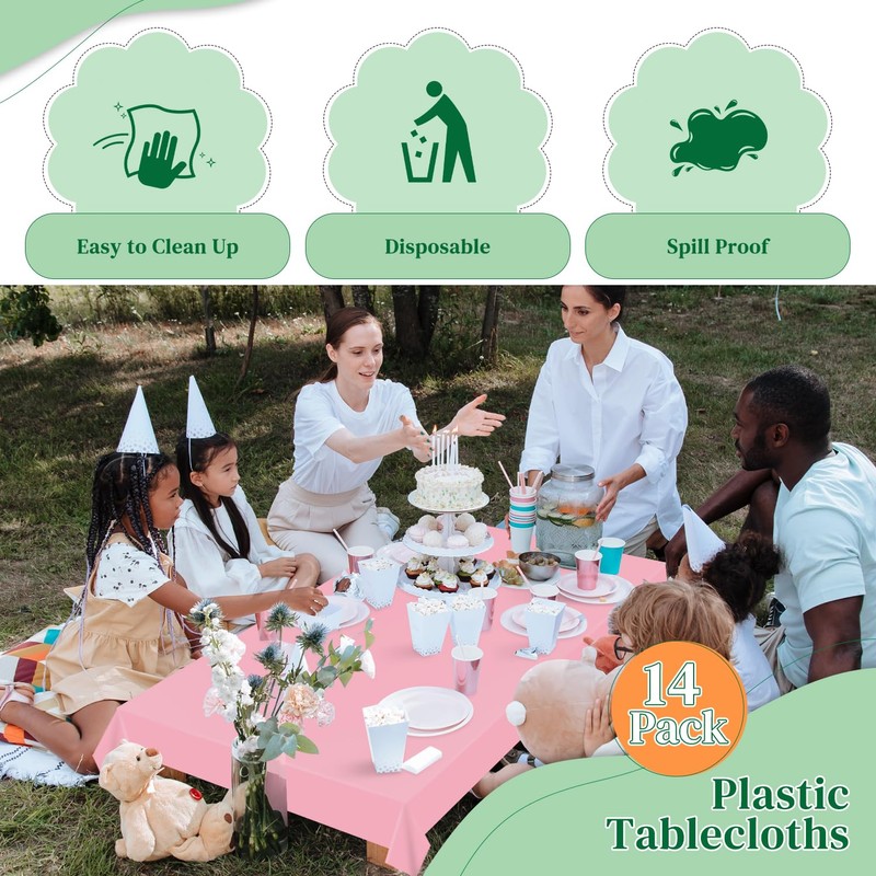 - Easy to Cleanup: These plastic tablecloths with one roll to clean up food scraps and trash. It's easy for you to do party cleanup with our disposable table cloth.