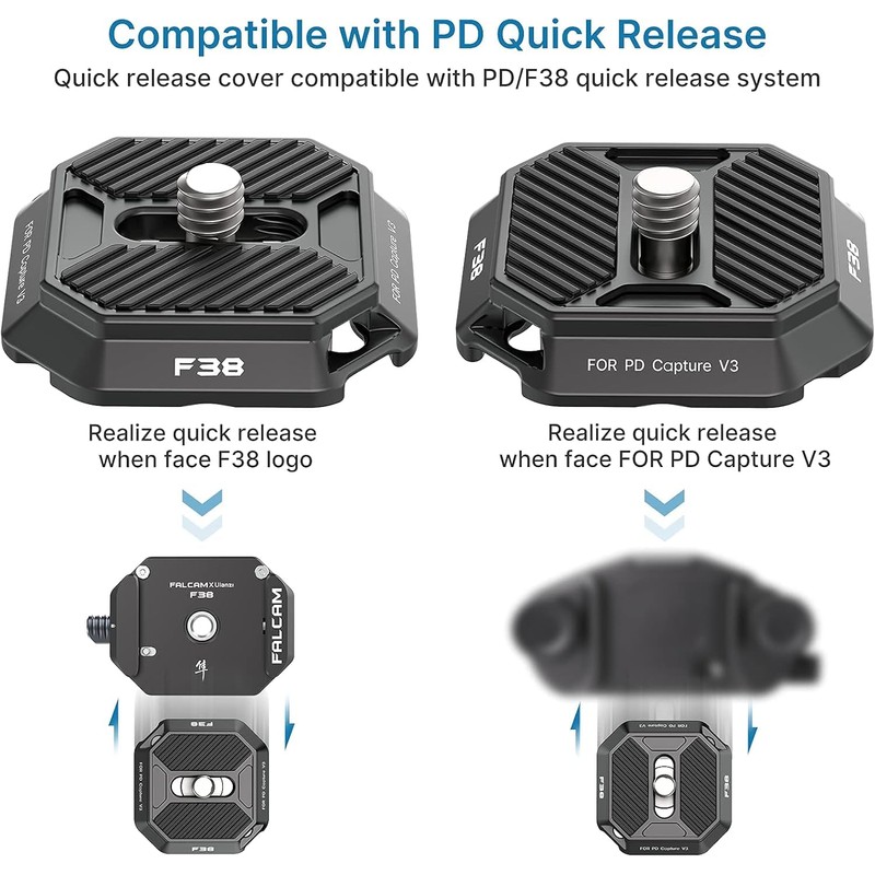 - Strong Universality - This new version F38 quick release top plate is compatible with Arca 38mm quick release base mount in the market. 1/4 screw thread on top plate fits any cameras, Compatible with Gopro , sonny ZV-1, SLR, phone mount adapter ect.