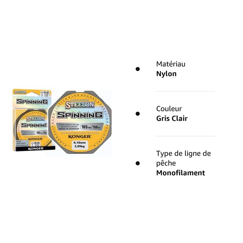 • Colour: light grey, invisible in water. * Best for spinning method * No memory effect * Ideal smooth surface * Super tear-resistant * Highest abrasion resistance * Minimum stretch * Base price: 0.03€/m