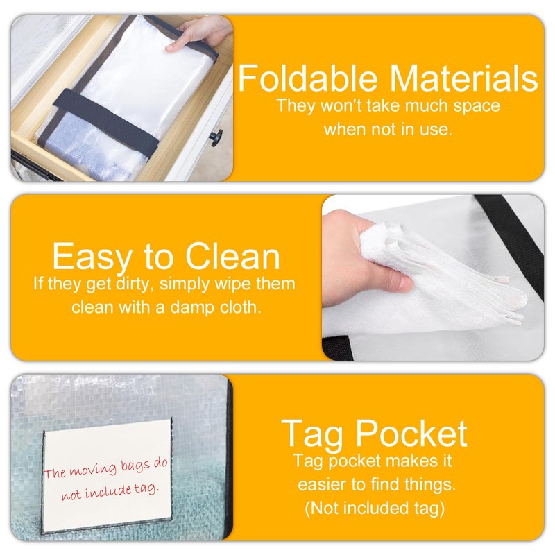 - Space-saving flexibility: more practical than moving boxes: Our storage bags are carefully crafted to meet your highest expectations. Unlike conventional moving cards that need to be disassembled and take up unnecessary space, this zippered storage bag can be easily folded and stored in drawers, wardrobes, cars or luggage. A practical choice for anyone who is mobile!