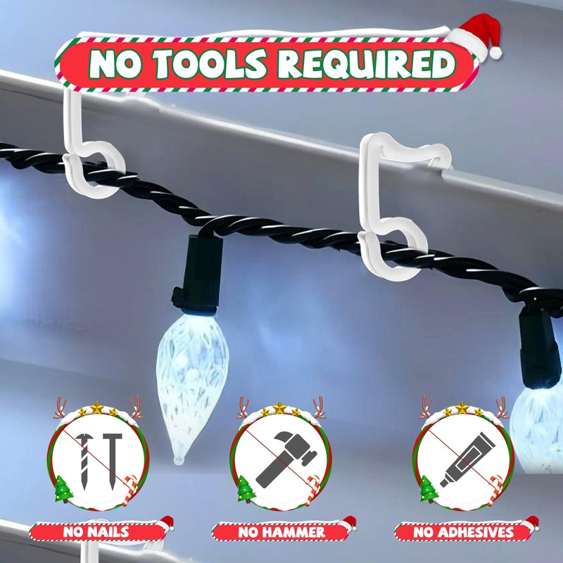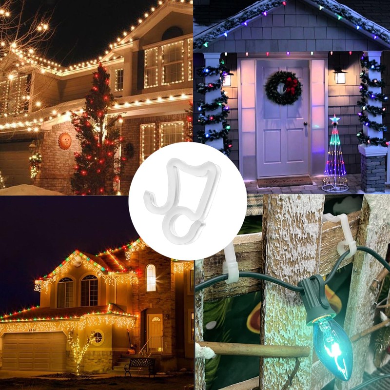 • Transform Your Space with 100 Light Clips: Elevate your holiday decor this season with our generous 100-pack of outdoor Christmas light clips. Made from robust white plastic, this light clips set ensures you have plenty of hooks to realize your festive vision, creating a stunning display that will impress all your guests.