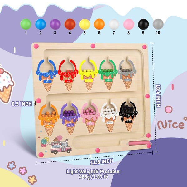 - 【Erforschen Sie das lustige Zahlen- und Farblabyrinth】Das Magnete Spielzeug Kinder ist wie ein Eiscreme-Labyrinth gestaltet. Jedes Eis ist in leuchtenden Farben gehalten und die verschiedenfarbigen Eissorten entsprechen den Zahlen 1-10. Mit dem Magnetstab können die Kinder die den Farben und Zahlen entsprechenden Magnetkugeln in die entsprechend bemalten Eissorten ziehen und so auf spielerische Weise das Erkennen von Farben und Zahlen sowie das Zählen lernen.