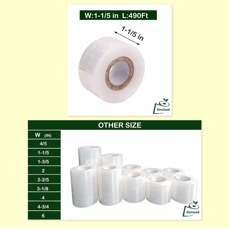 - Sealing/Grafting Film tape is clear, (Size:3CM(1-1/5") W, 2 Roll, per roll: about 490 ft. thickness is 0.02mm)