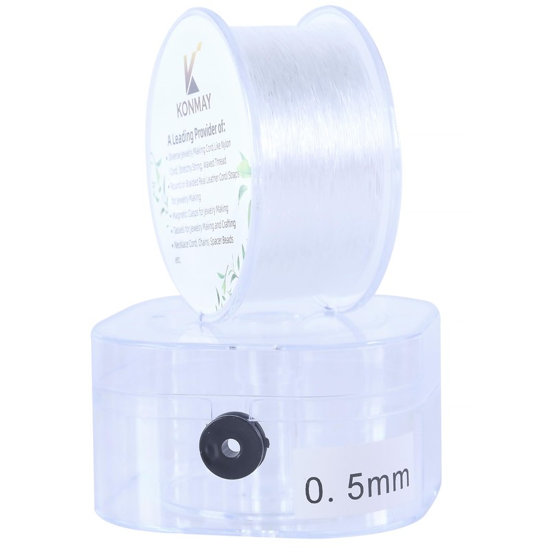 KONMAY 1 Rolls 0.5mm Round Stretchy Bracelet Strings with Organizing Case, 130 Yards Clear Crystal Elastic Thread Cord for Jewelry Bracelets Making and Beading