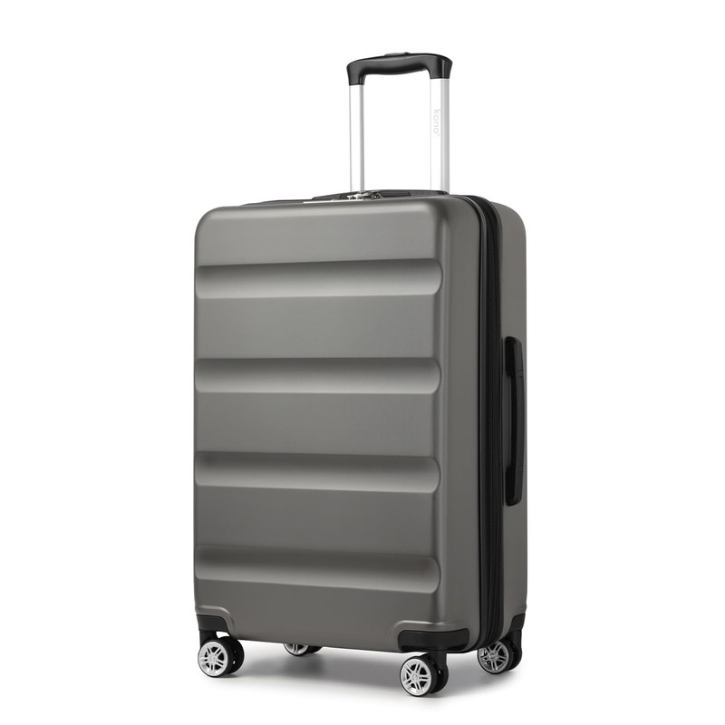 Kono 24 Inch Expandable Spinner Luggage with Wheels Hardshell Medium Checked Suitcase TSA Lock Grey