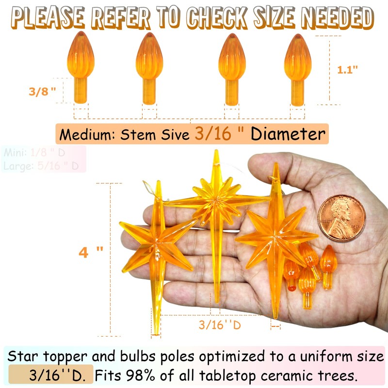 - 【ORANGE BULBS SIZE】 Bulb : 11/16”Heigh,7/16”Width,Stem Size:3/8”Length,3/16”Diameter.