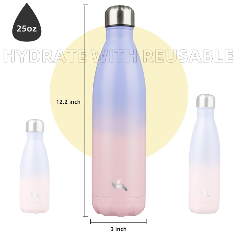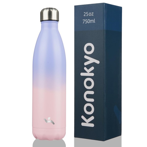 Konokyo Insulated Water Bottles,25 oz Double Wall Stainless Steel Vacumm Metal Flask for Sports Travel,Pastel Sunset
