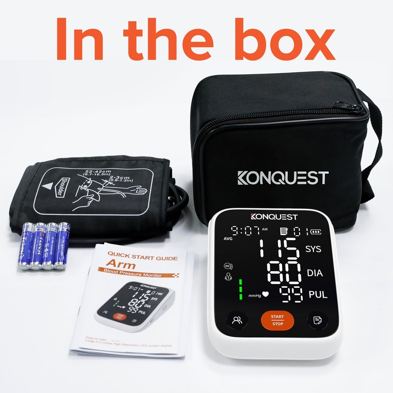 KONQUEST Blood Pressure Monitors for Home Use Upper Arm, Accurate Cuff 8 ½ ” - 16 ½” Monitor with Large LED Display, 2 Users 398 Sets Memory & HR Detection, Digital BP Machine with Carrying Case