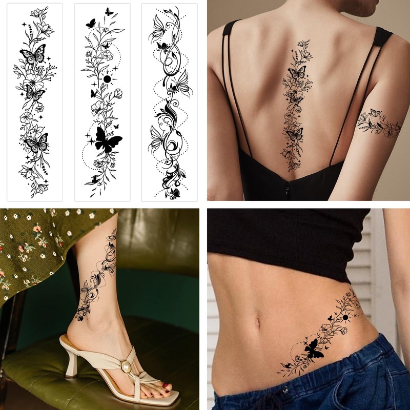 - Realistic Designs: Includes 10 sheets of intricately detailed Black flower tattoos, featuring all kinds of floral designs, butterflies, moon, star and hearts, super realistic. Each sheet measures 8.26*2.36inch, mix and match designs to create unique looks for any occasion