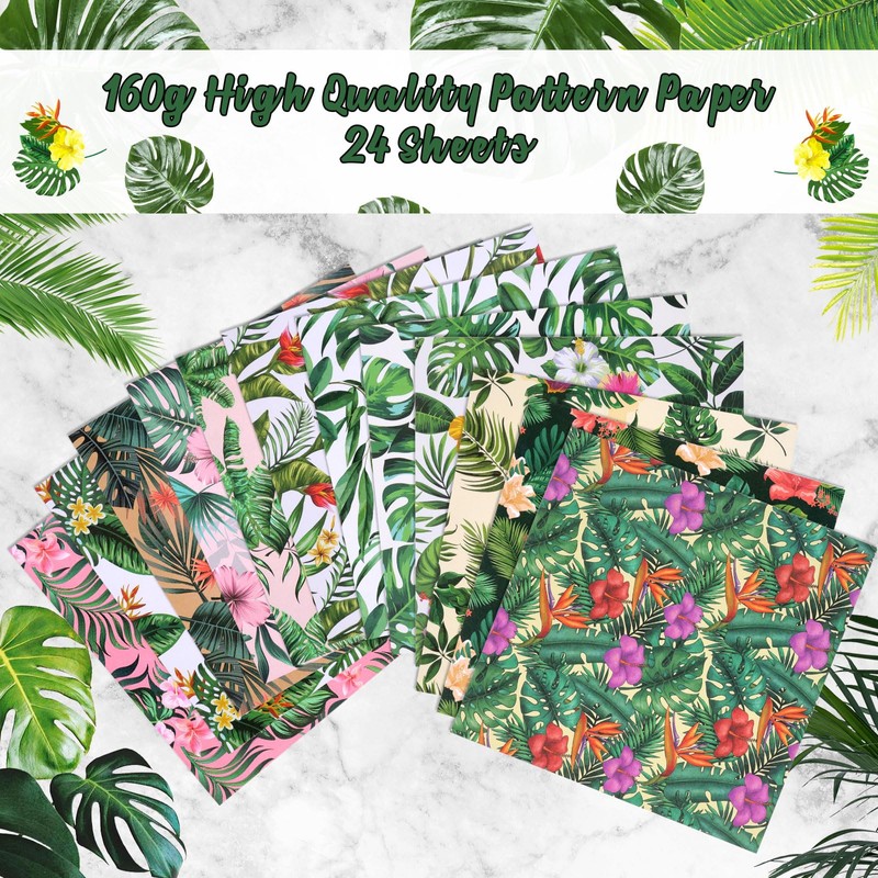 Ideal for crafting enthusiasts, this 12x12 scrapbook paper set contains 24 sheets of carefully designed patterned paper to diversify your creations. Each sheet exudes a rich tropical flavor.