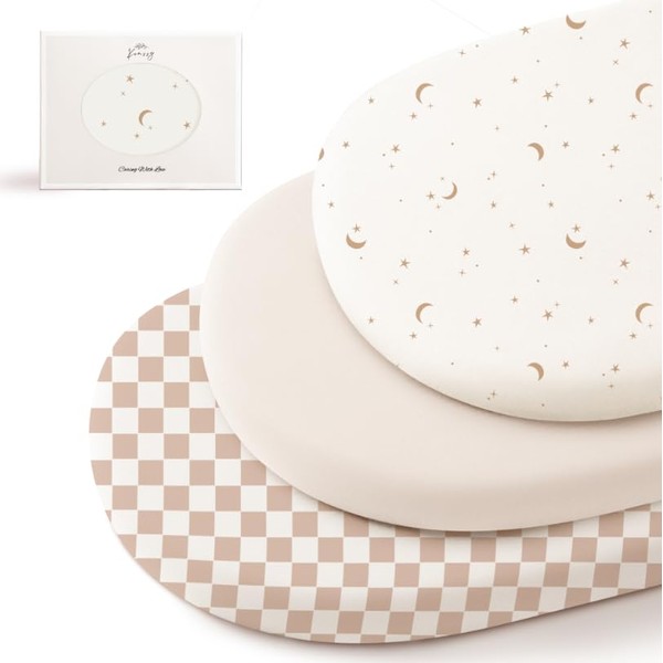 Konssy 3 Pack Stretchy Bassinet Sheets for Baby Girl Boy, Soft Breathable Baby Bassinet Mattress Sheets Fit for Hourglass Oval Cradle, Moses Basket Rectangle Mattress (Coffee Check)