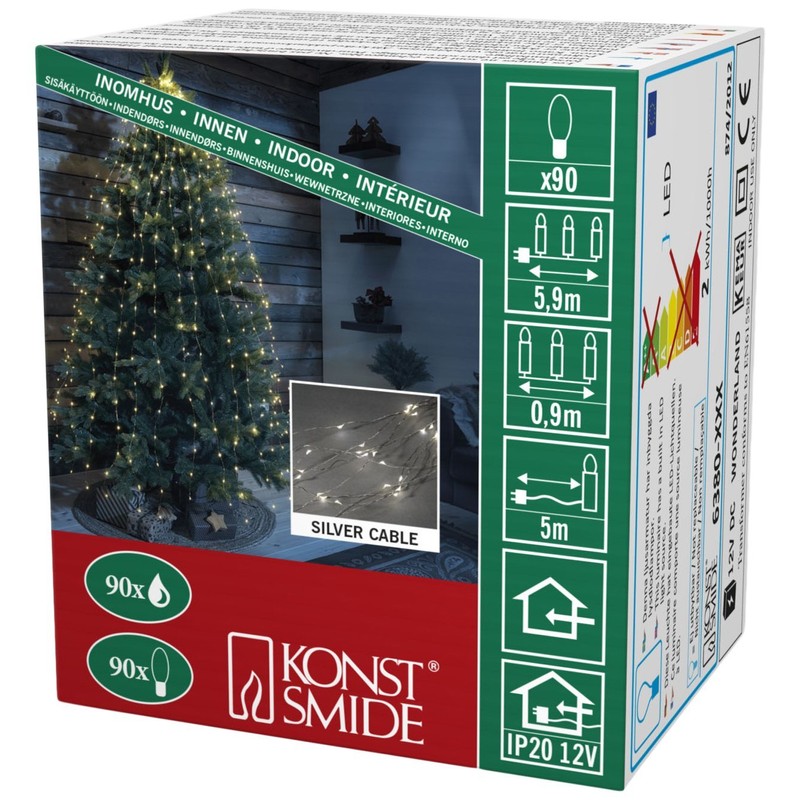 • The 10 flexible silver wires, with a total of 90 warm white diodes, of which 9 diodes on each wire and decorative drops, are versatile.