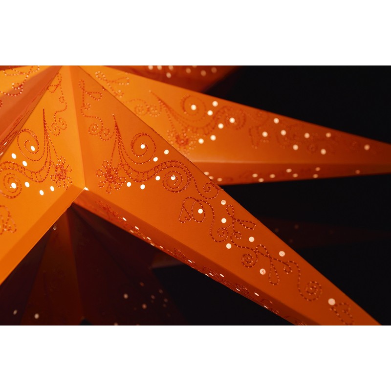 - This classic 78 x 78 cm orange paper star with orange embroidery pattern makes your living room shine in a beautiful light.