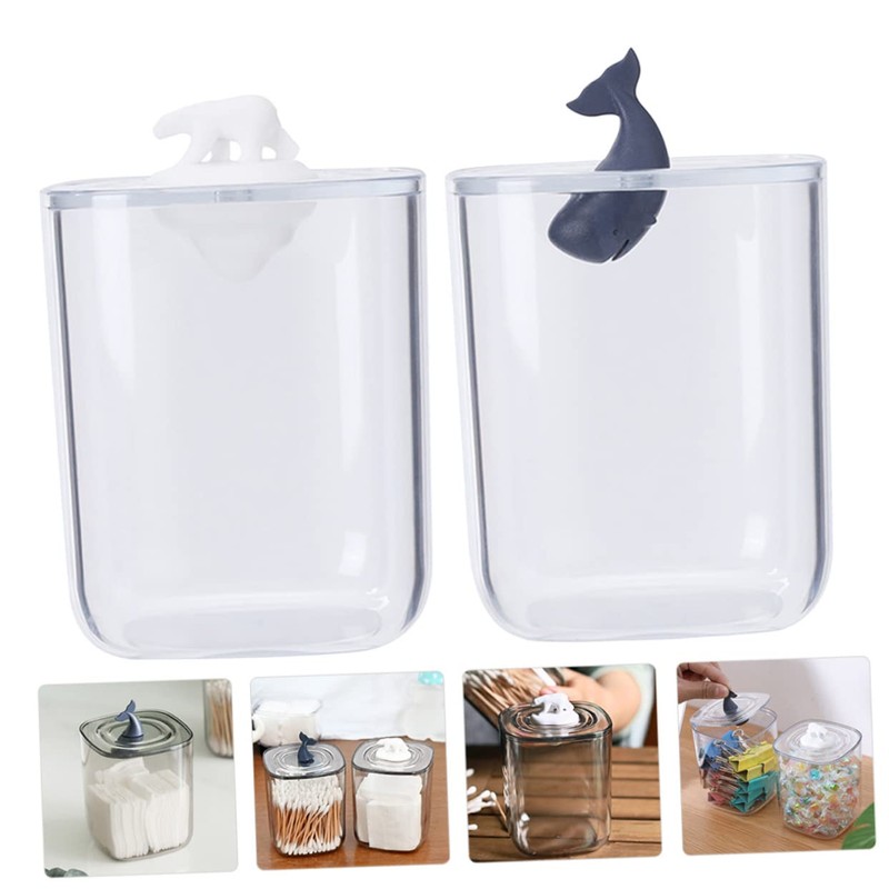 KONTONTY 2 Pcs Whale Design Acrylic Makeup Cotton Storage Box Toothpick Organ...