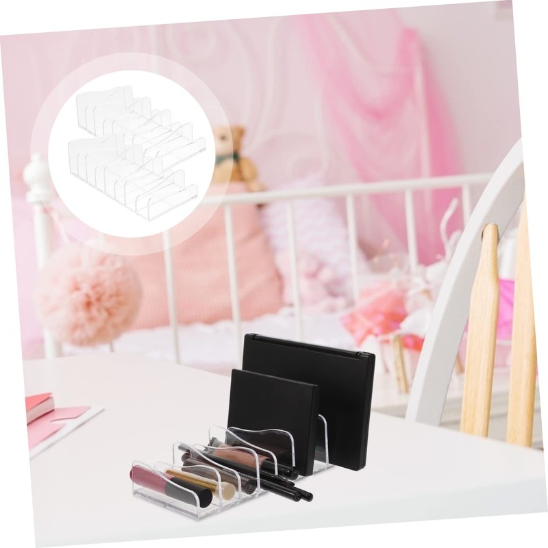- This eyeshadow palettes holder with divided design, which can make your eyeshadow palettes and other cosmetics classified and easy to find eyeshadow holder organizer.