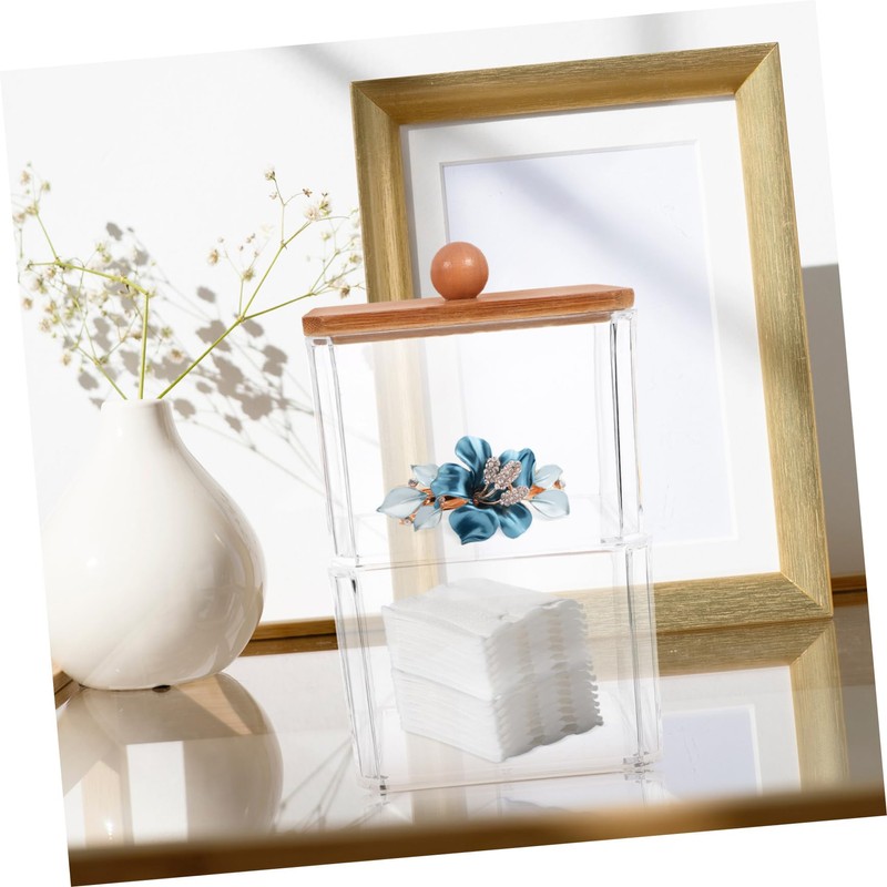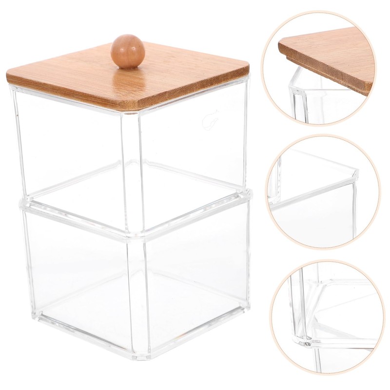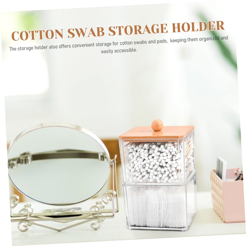 Cotton Swab Container It can not only be your distinctive cotton swab storage holder, but also can be used to store your cotton balls, cotton pads, earring, finger rings, trinkets, etc.Cotton Swabs Holder This Cotton Swab Holder is made of material with bamboo lid for and long-lasting use