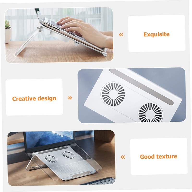 - Laptop stand holder: its fan motor operates at a low decibel level, no longer afraid of waking up roommates.
